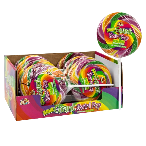 Albert’s Giant Sour Swirl Pop is a big, eye-catching lollipop with bold sour fruit flavor and a fun rainbow swirl that makes it stand out in any candy display. This 4.25 oz pop is a great pick for novelty candy lovers who want a long-lasting sweet-and-tart treat with plenty of visual wow factor.