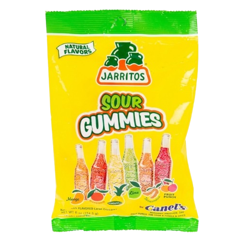 Experience the bold, tangy side of Jarritos with these vibrant sour gummies! Inspired by the iconic Mexican soda brand, each chewy piece delivers a punchy flavor punch in six exciting flavors. Shaped like miniature soda bottles, these gummies bring fun and flavor together.