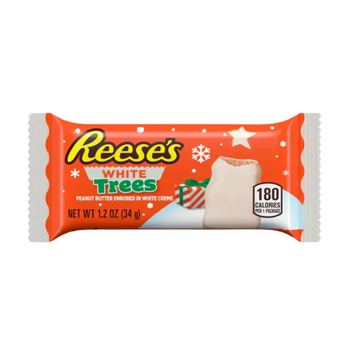 Perfect for the holidays, REESEʼS White Creme Peanut Butter Trees look like an evergreen on a snowy day. Quite enchanting, if you ask us. Enjoy the sweet and salty combo of creamy peanut butter with smooth white creme while you're sitting around your own tree. Get yours today.