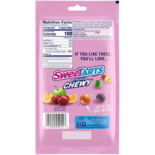 Bendable fun that’s licorice and SweeTARTS all in one. Chewy with a fruit-punch filling, SweeTARTS Ropes explode with a mouthwatering maze of texture and taste that makes candy lovers go crazy.
