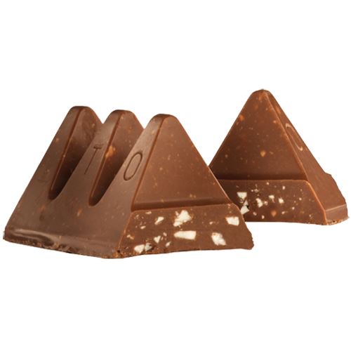 The Toblerone special recipe, triangular shape and instantly recognizable logo make it distinct. "Toblerone" is a play on the names "Tobler," one of the inventors of the unique chocolate bar, and "Torrone," the Italian word for honey and almond nougat.