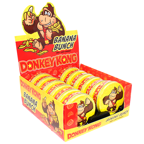 Donkey Kong banana candies in a collectible tin! These bite-sized sweet treats bring retro gaming nostalgia to snack time. Perfect for fans of the classic arcade game, collectors, and anyone craving a fun, fruity pick-me-up. It's on like Donkey Kong!
