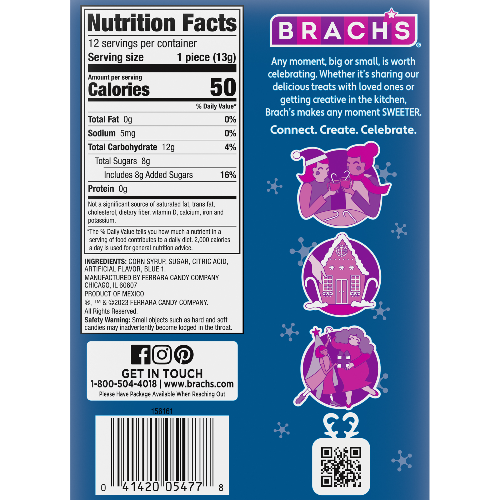Perfect for decorating trees, filling stockings, or enjoying as a festive treat, these candy canes bring a fun twist to the classic holiday favorite. Whether displayed in a candy dish or used to top gifts and baked goods, Brach’s Blueberry Candy Canes make the season a little brighter—and a lot sweeter.