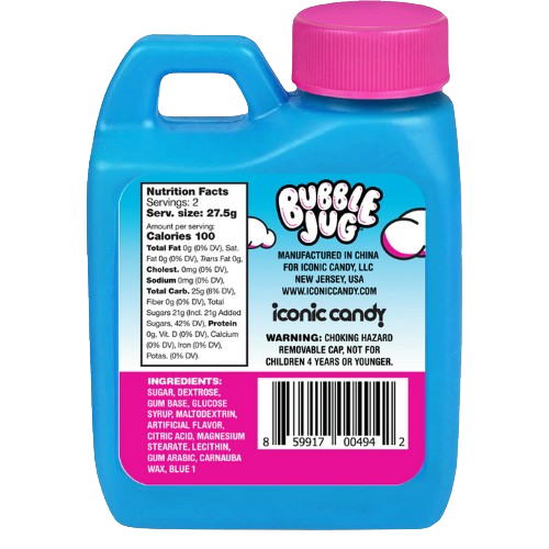 Bubble Jug Blue Raspberry Gum brings back 90s nostalgia in one interactive treat. Pour the tangy blue powder into your mouth and watch it transform into chewy bubble gum—perfect for blowing bubbles and reliving childhood fun. Bold blue raspberry flavor, iconic retro packaging, and pure playful entertainment in every jug.
