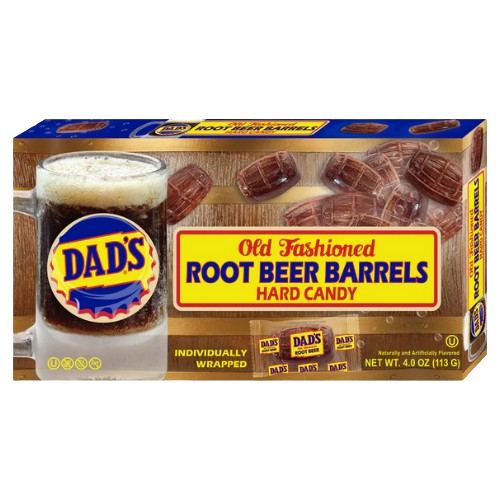 Dad's Root Beer Barrels bring that classic root beer flavor in a convenient 4 oz. theater box. These hard candies are a treat everyone can enjoy. Perfect for a quick nostalgic fix or sharing with friends.