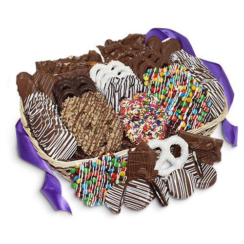 Satisfy the ultimate chocolate craving with our Cravings Plus Collection Gift Basket. Overflowing with handcrafted, chocolate-dipped delights, this basket offers a generous selection that’s ideal for corporate gifts, holiday gatherings, or simply spoiling someone special.