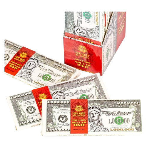 Treat yourself like a millionaire with the Fort Knox Million Dollar Bar! This silky smooth milk chocolate melts perfectly in your mouth, delivering rich, satisfying flavor wrapped in . Whether it’s a gift, a party favor, or a sweet escape just for you, this eye-catching treat turns every moment into a celebration. Grab your golden ticket to chocolate luxury and enjoy every delicious bite!