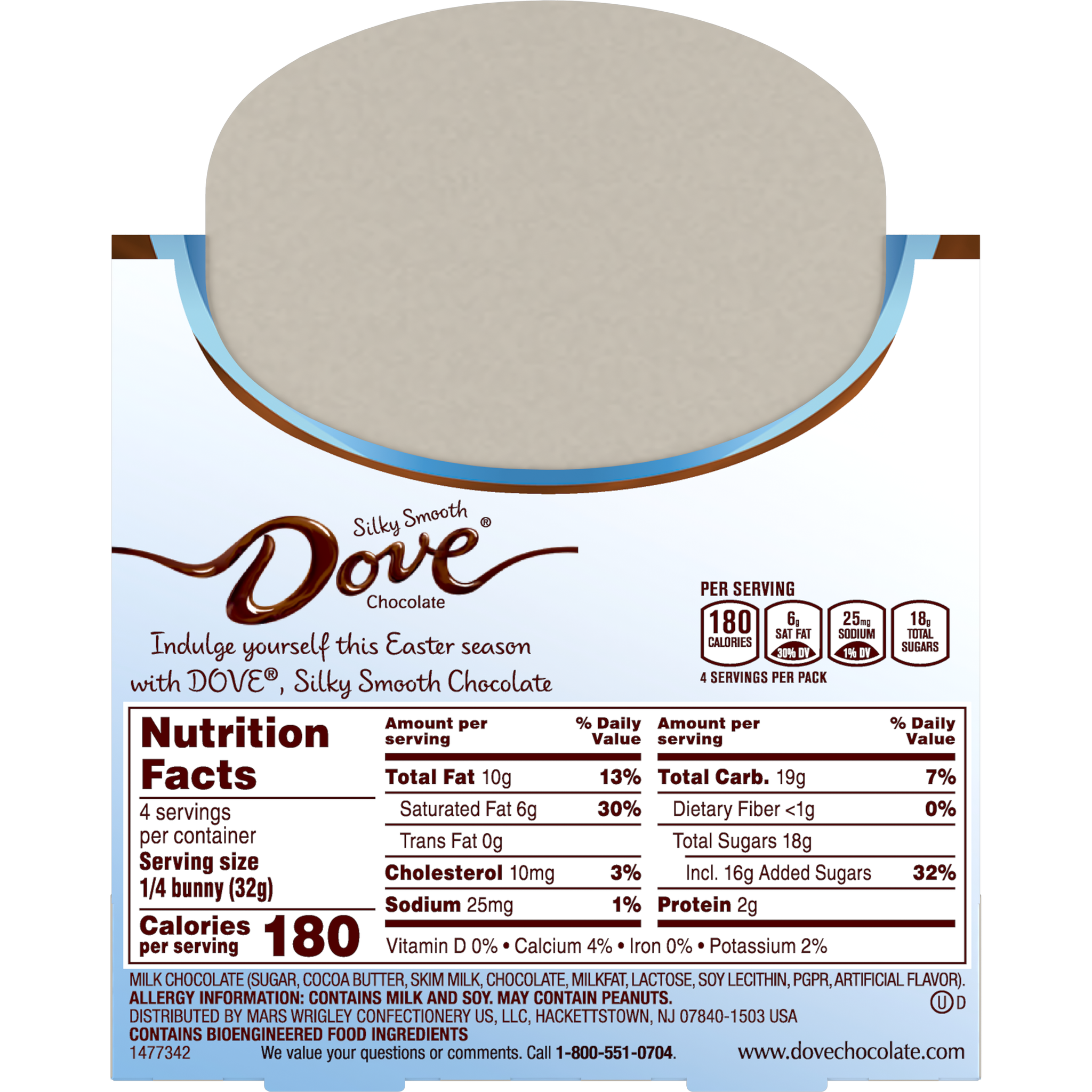 Dove Solid Milk Chocolate Bunny, a hop-tastic 4.5-ounce treat that will make your taste buds do a happy dance! This chocolate bunny is here to bring smiles, satisfy your sweet tooth, and spread some cocoa-filled joy.