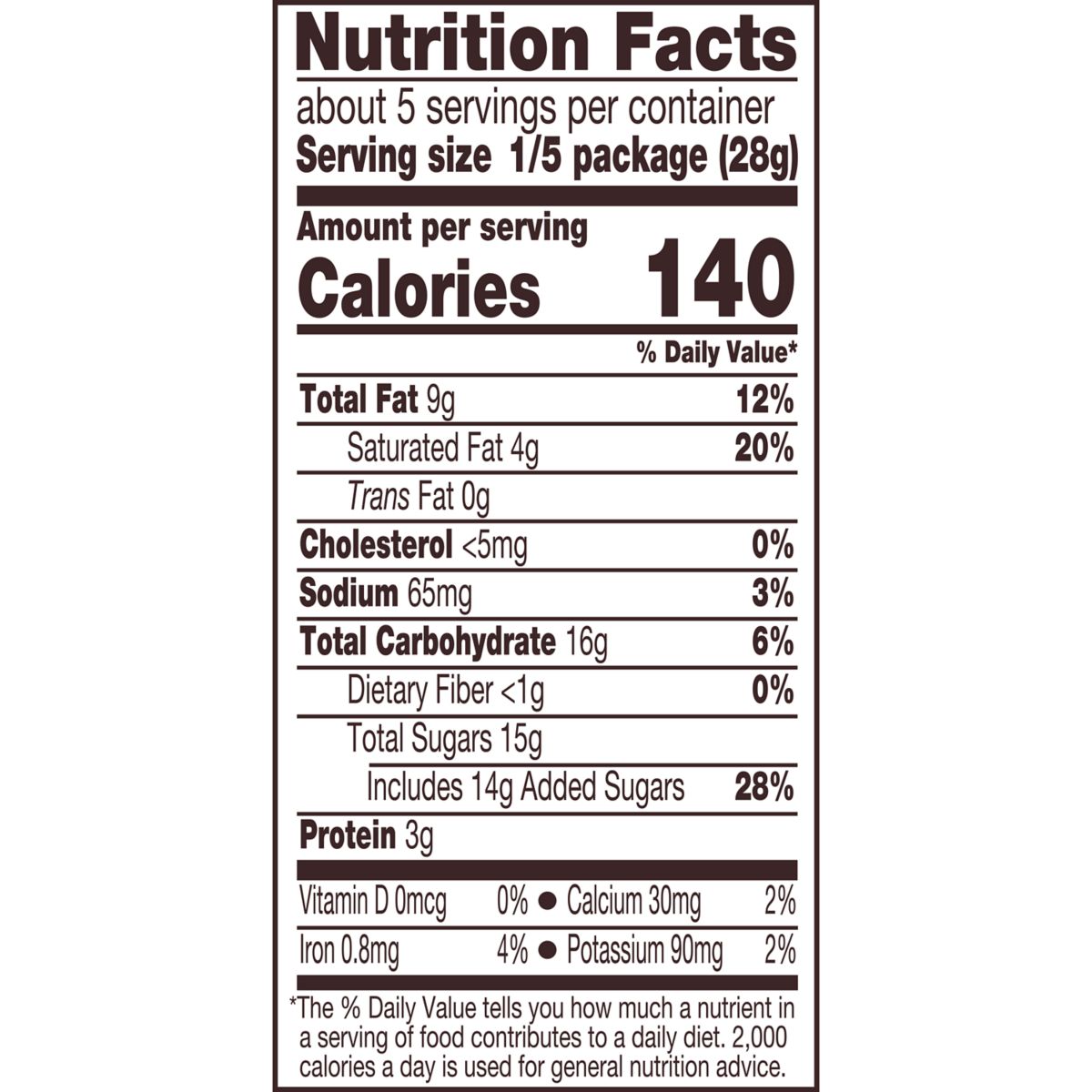 Ingredients: Milk chocolate (sugar, cocoa butter, chocolate, nonfat milk, milk fat, lactose, lecithin (soy), PGPR (emulsifier), peanuts, sugar, dextrose, cocoa butter, contains 2% or less of: hydrogenated vegetable oil (palm kernel and palm oil), salt, palm kernel oil, cornstarch, TBHQ and citric acid (to maintain freshness). Manufactured on the same equipment that processes almonds.