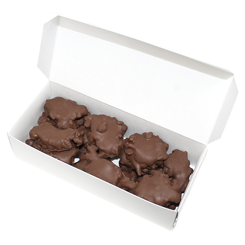 Pecans, chewy caramel and smooth milk chocolate. Delicious chewy caramel dotted with lightly salted pecans and covered with just the right amount of milk chocolate. A fabulous gift for the chocolate/caramel/nut lover in your life.