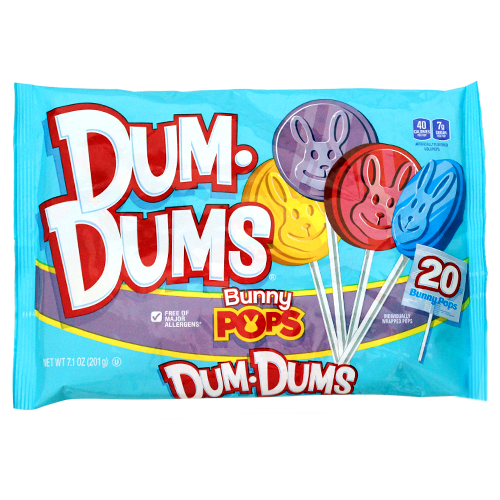 Make Easter Pop with these adorable lollipops! These seasonal Dum Dums Bunny Pops are shaped like cute Easter Bunnies, in four fantastic flavors: Tropi-Berry (purple), Berry Lemonade (yellow), Berry Melon (red), and Berry Blu Cherry (blue). Dum Dums are already America's Favorite Giveaway Treat, but these can take any Easter Basket to the next level.
