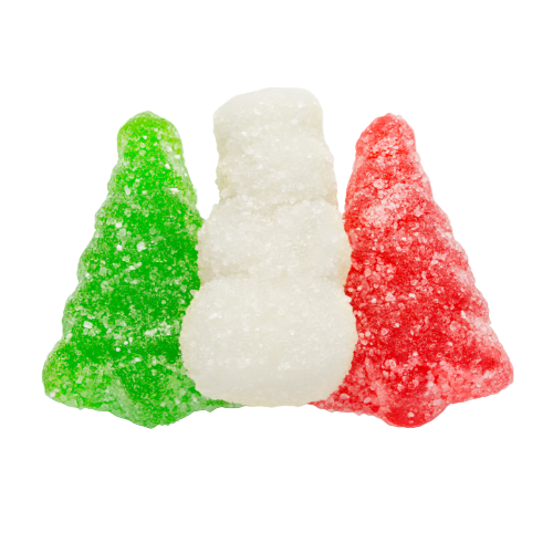 Looking for a White Christmas in a bag? Look no further than our Albanese Sanded Christmas Snowmen & Trees! With a sprinkling of snow on our red and green trees and white snowmen, these gummies will surely get you in the holiday spirit. Enjoy Wild Cherry, Green Apple, and Strawberry Banana flavors.