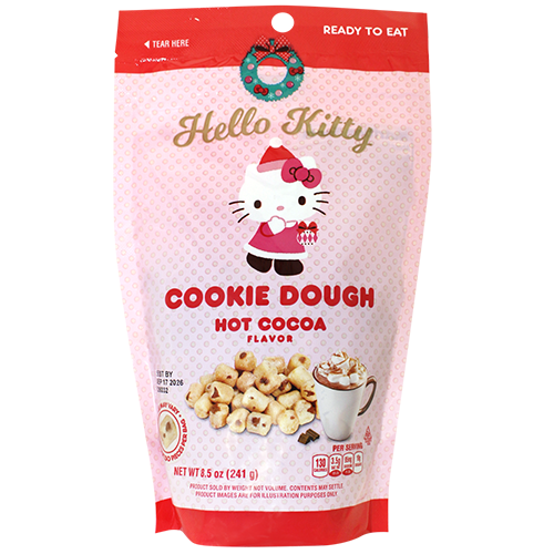 Dive into the creamy goodness of Hello Kitty Hot Cocoa Flavored Cookie Dough! This 8.5 oz pouch is filled with scoopable, edible cookie dough bursting with cozy hot cocoa flavor. Adorned with adorable Hello Kitty artwork and sealed in a handy resealable bag, it’s perfect for enjoying again and again. Hurry, limited quantities available—grab yours now!