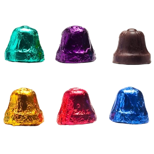 Tiny, intricately designed premium dark chocolate bells wrapped in dazzling jewel-toned Italian foil. They’re perfect for stuffing gift bags, party favors, balloon weights, candy jars, Christmas stockings, or spicing up your holiday table.