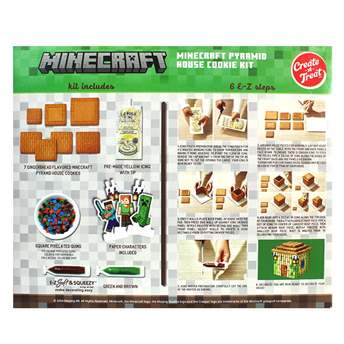 This fun cookie kit has pre-baked cookies, ready icing, and colorful candies—no baking needed! Build and decorate your own cookie house with family or friends. It’s perfect for holiday parties or playdates. The kit also includes paper characters Alex, Steve, and Creeper for extra fun.