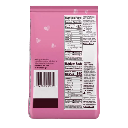 A sweet Valentine's combo featuring HERSHEY'S KISSES and HERSHEY'S HUGS in one 21.4 oz. bag. Milk chocolate meets white creme in this playful pairing—perfect for sharing or savoring solo.