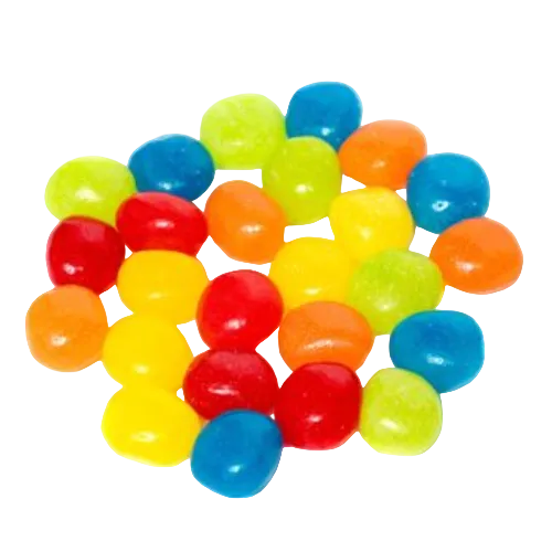 Ingredients: sugar, corn syrup, corn starch, modified corn starch, citric acid, contains less than 2% of natural and artificial flavor, confectioner's glaze (shellac), carnauba wax, beeswax, gum arabic, sodium citrate, yellow 6, yellow 5, blue 1, red 40.